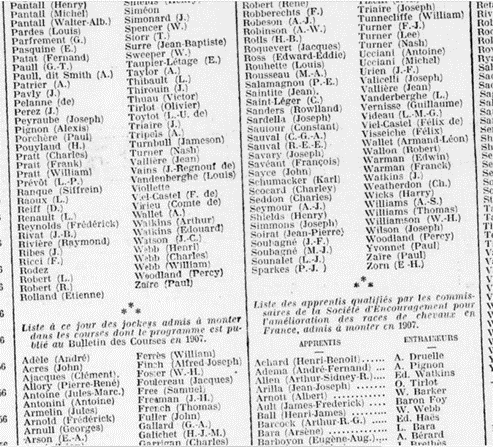 Il sera en charge du soin des chevaux de course du Marquis de Langle chez qui il mènera une carrière d’entraineur jockey. En 1907 il apparait déjà sur la liste des jockeys admis à monter en course