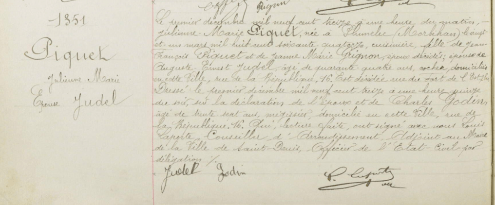 16 rue de la République à Saint Denis (acte de décès de Julienne)