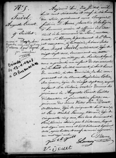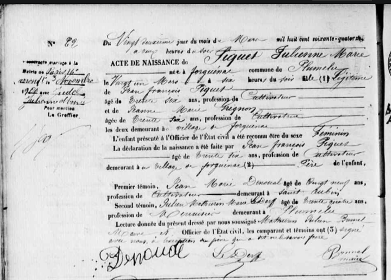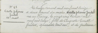 Elle y est décédé le 13 mars à l’âge de 16 jours. La déclaration a été faite par Marguerite Burnin et René Gondamin